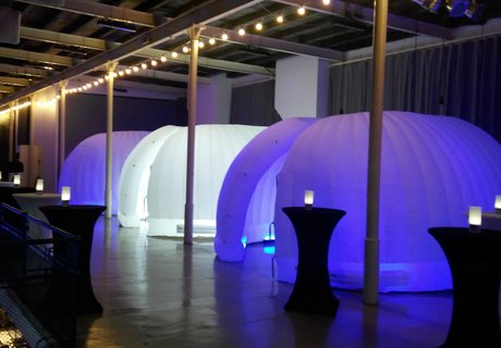 "Nafukovacia kancelária" je jednou z našich všestranných interiérových štruktúr. Svojim inteligentným vzhľadom a samostojacou konštrukciou šetrí priestor a vytvorí príjemnú zónu pre meeting room, chill-out zónu alebo výstavný stánok. Kapacita je až 16 osôb.